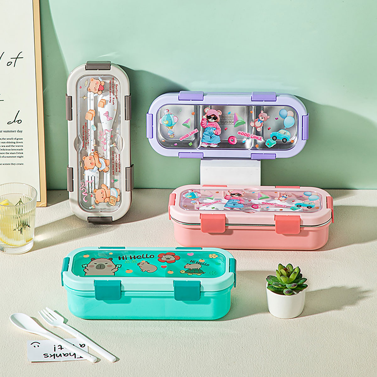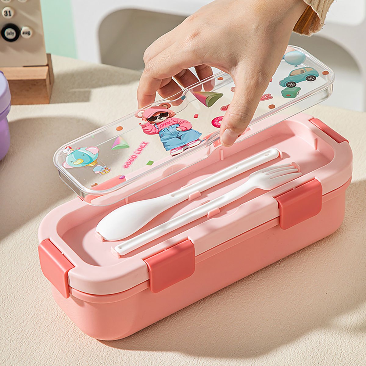 (印花款)愛(ài)悅長(zhǎng)方形便當(dāng)盒兩格/三格可選 塑料款/不銹鋼款