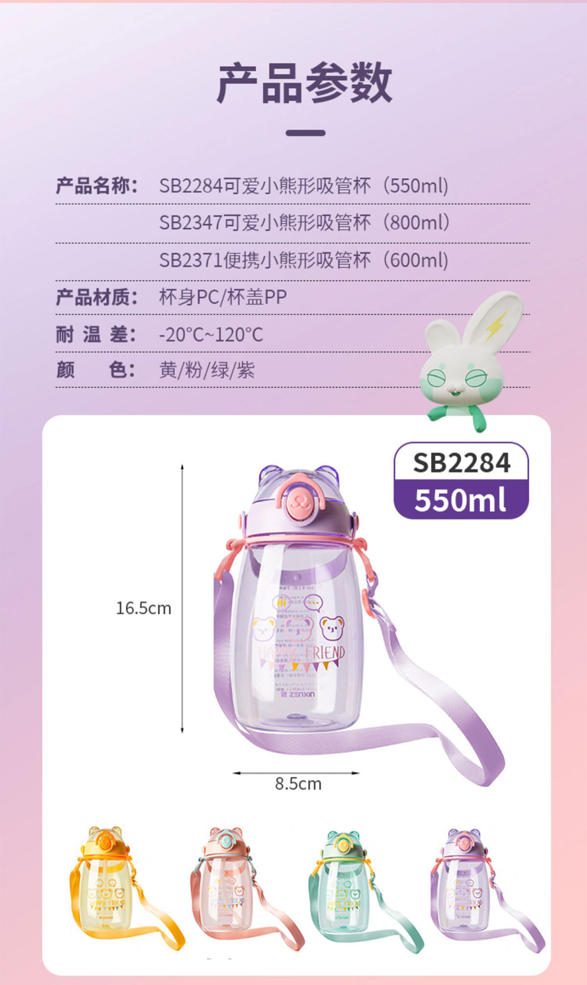 可愛小熊吸管杯(550ml/600ml/800ml)
