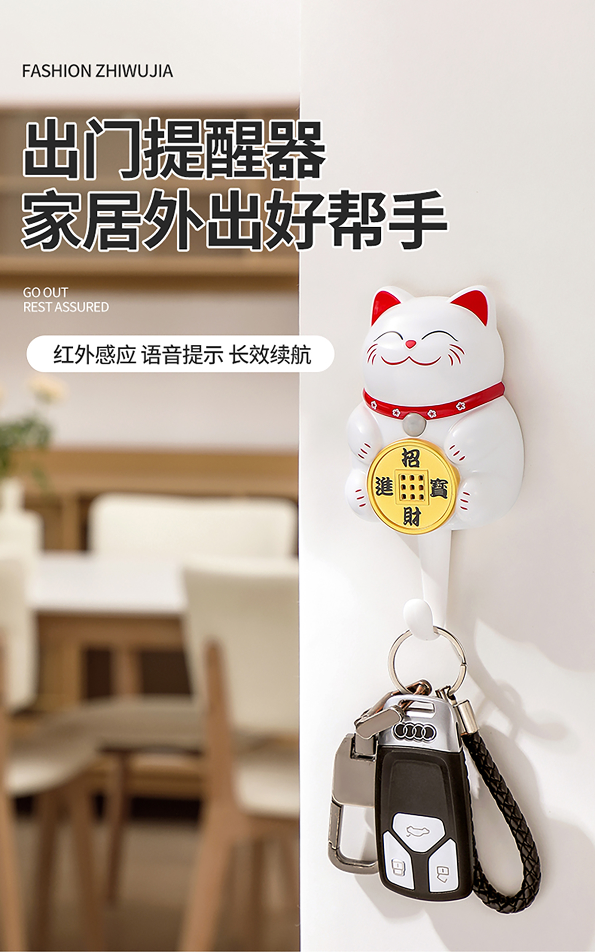 招財貓出門提醒器